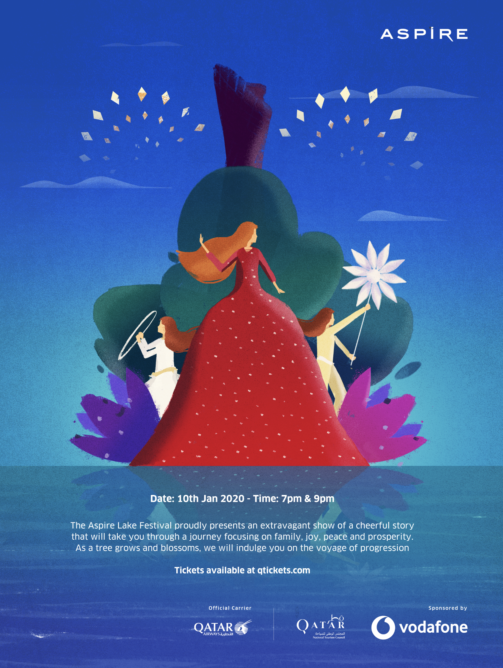 The Aspire Lake Festival is a breathtaking show and fireworks display that takes place annually in Aspire, Qatar. The festival features a stunning combination of light, music, and water, which creates a magical and mesmerizing experience for the audience. The posters and branding are designed to capture the essence of the festival and to generate excitement and anticipation among the audience. The branding includes elements such as colors and imagery, which are carefully chosen to reflect the festival's theme and mood.
