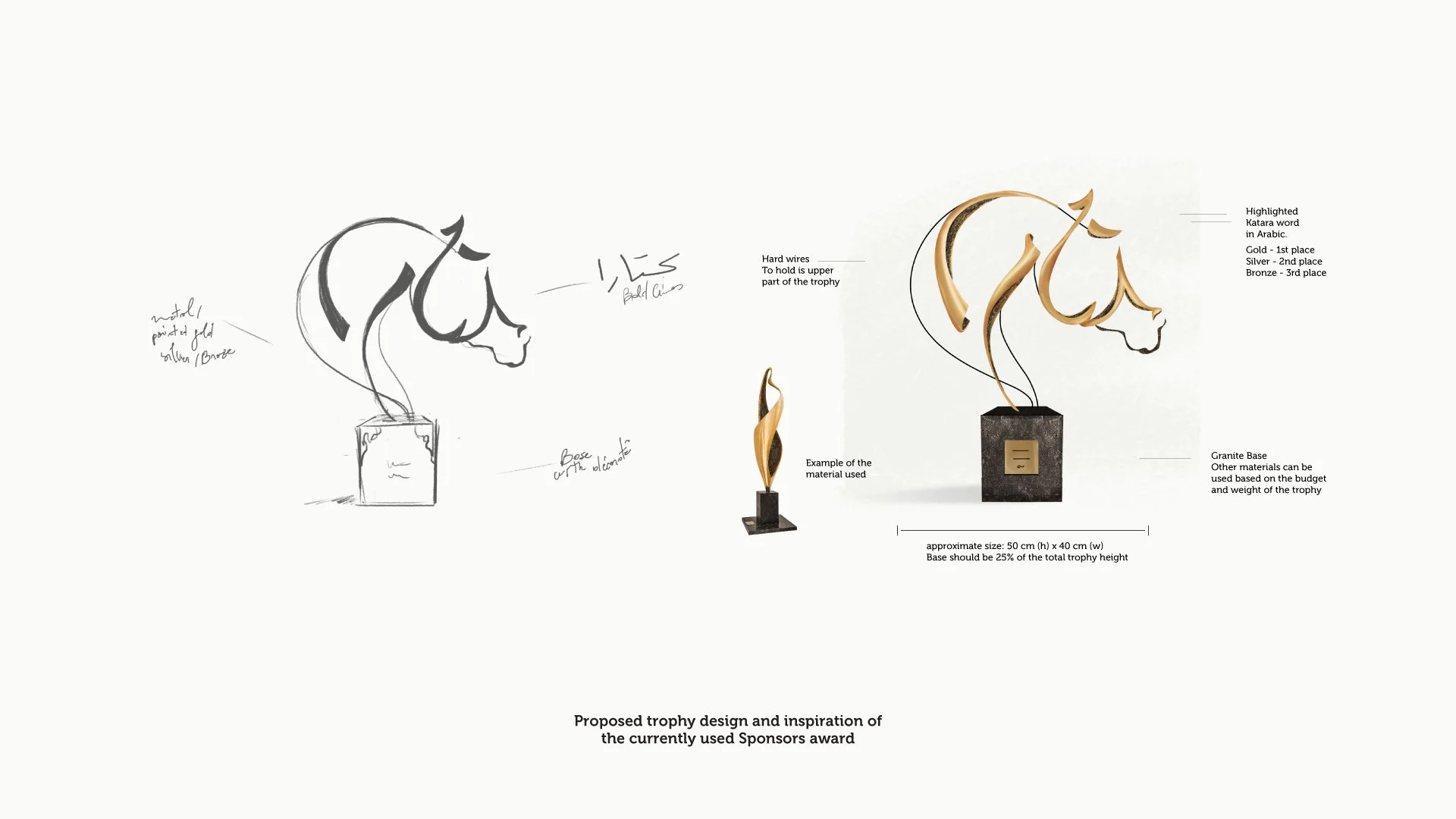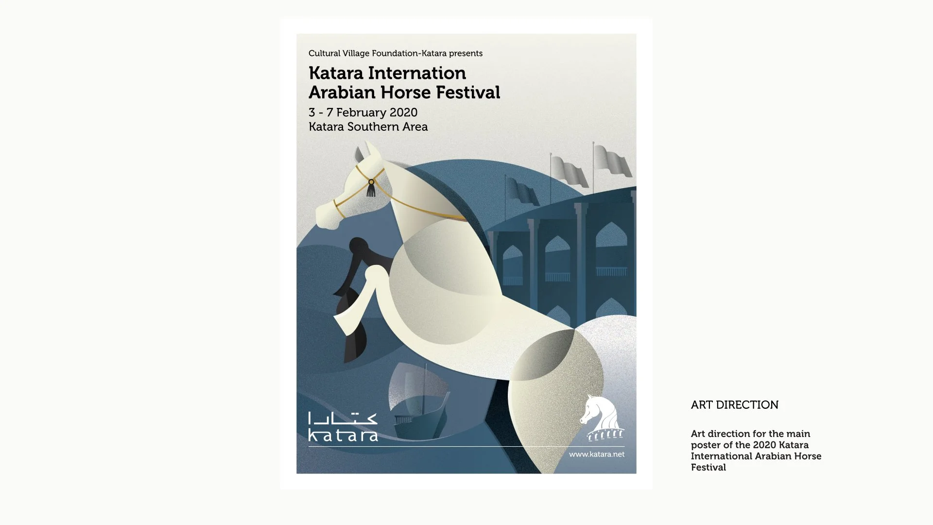 The Katara International Arabian Horse Festival is an annual event held in Katara, Qatar, that celebrates the beauty and grace of Arabian horses. The event showcases the finest Arabian horses from around the world, and features various competitions and shows. The concept creation of the event is all-encompassing, with the creation of the event logo, branding, trophies, and uniforms designs, all contributing to the overall aesthetic and prestige of the festival. These elements are designed to reflect the elegance and majesty of the Arabian horse, and contribute to the event's reputation as a world-class celebration of this magnificent animal.